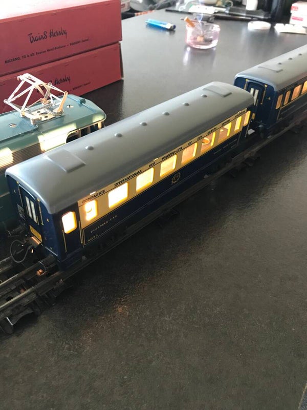 2 VOITURES CWL RESTAURANT + PULLMAN NEUFS EQUIPEES CHACUNE D UN ECLAIRAGE INTERIEUR D ORIGINE -