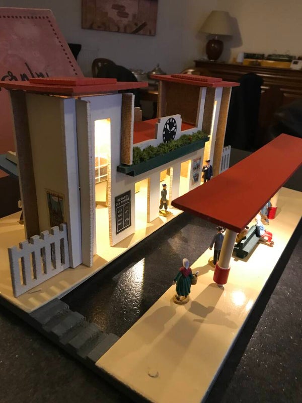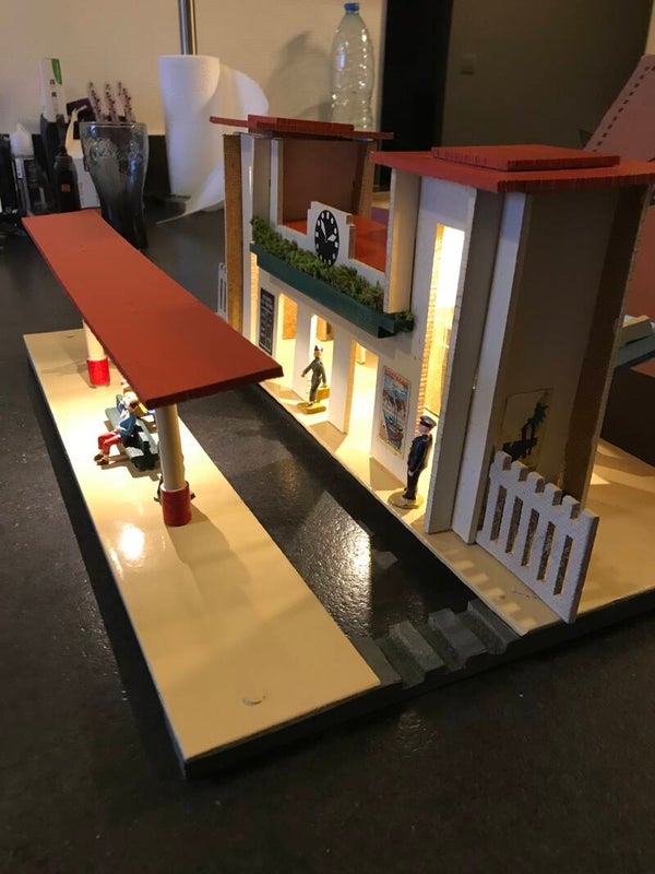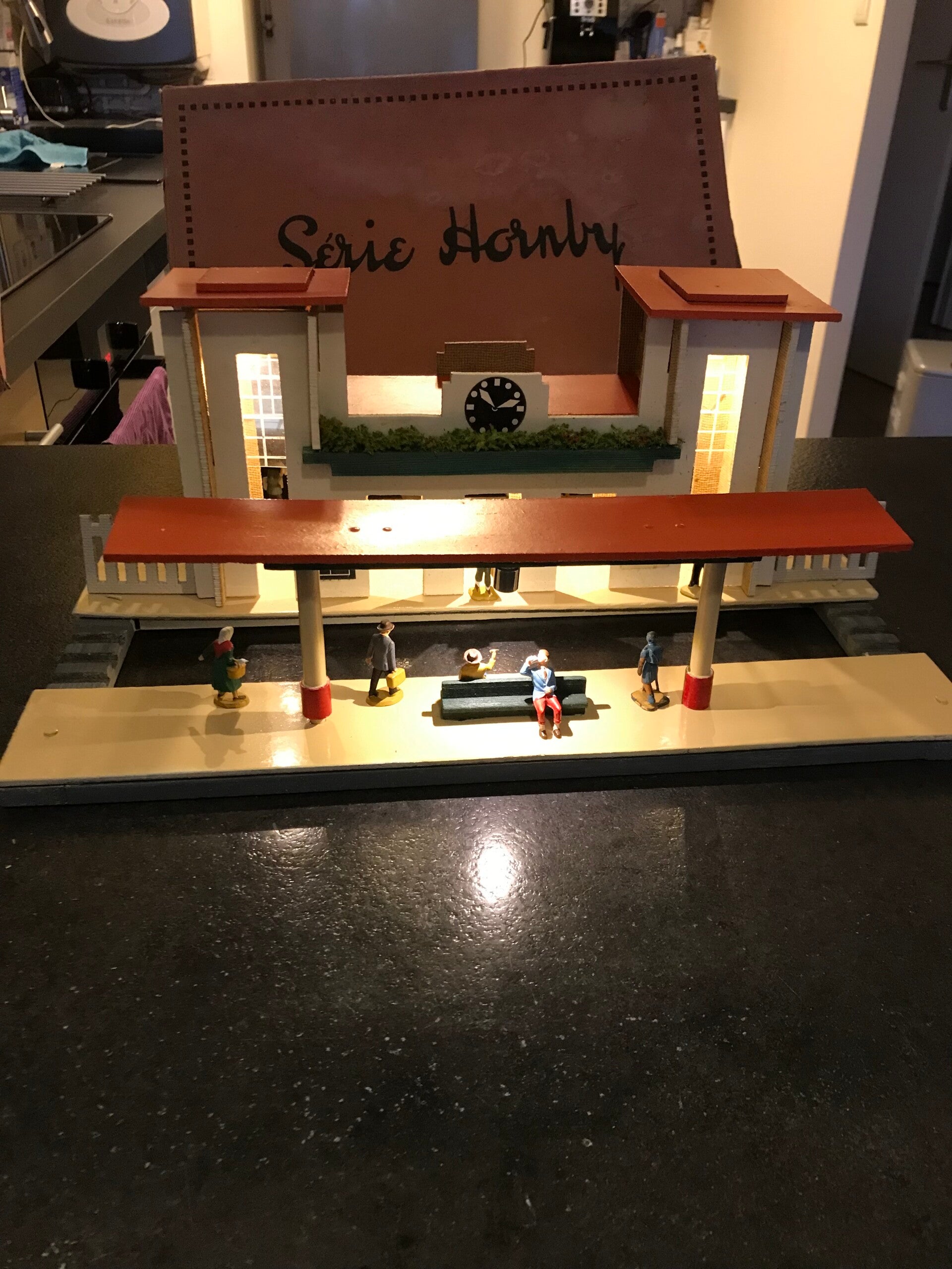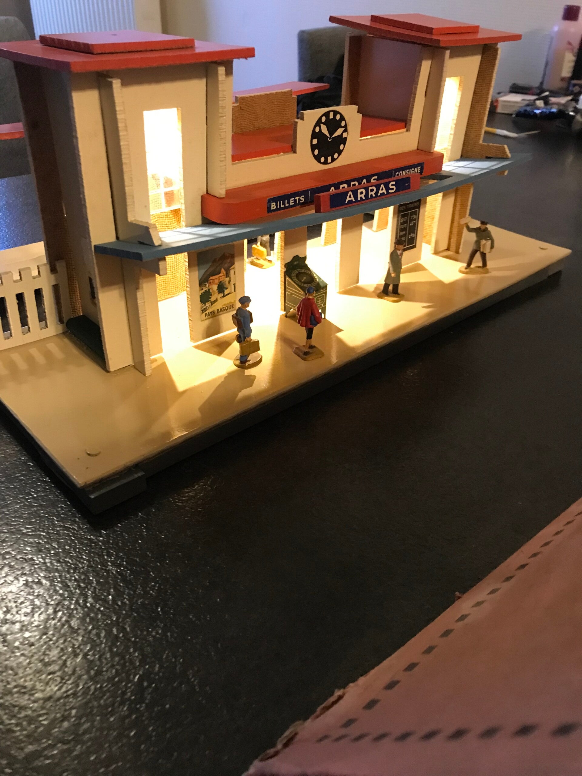 HORNBY ECHELLE O GARE N° 18 D'ARRAS EN BO AVEC ECLAIRAGE ET PERSONNAGES DE GARE.